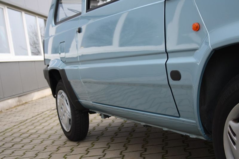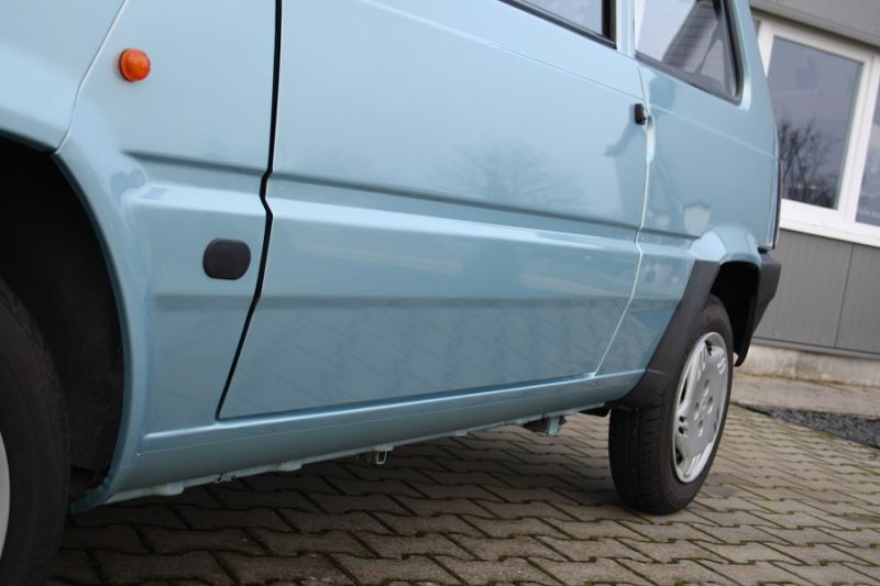 Angeboten wird hier ein sensationell guter Fiat Panda 1100 "College" im attraktiven blau-metallic... und originalen 19.500 Kilometern! Der Panda war bzw. ist ein Kleinwagen des italienischen Automobilherstellers Fiat, die erste Generation vom Typ 141 wurde von 1980 bis 2003 produziert. Er zählt heute zu den erfolgreichsten Modellen der Marke und wurde von niemand anderen als von Giorgio Giugiaro entworfen. Seine kantige Form und seine Einfachheit machen ihn zum sympathischen Alleskönner und Zweitwagen. Der von uns angebotene Wagen kommt gerade aus dem sonnigen Italien wo er Zeit seines Lebens von schlechtem Wetter und salzfreien Straßen verschont geblieben ist. Sein Besitzer benutzte den Panda nur sehr wenig bis gar nicht, daher der außergewöhnlich gute Zustand und die wenigen Kilometer. Egal wo man den Wagen begutachtet... er wirkt frisch und unverbraucht. Er befindet sich größtenteils im Erstlack, aufgrund Lagerspuren wurde der Panda partiell rechts nachlackiert (was aber in keinster Weise sichtbar ist und lediglich mit dem Lackdickenmesser nachvollziehbar ist). Er ist definitiv nicht geschweißt geschweige denn restauriert. Einfach herrlich original... Auch der Innenraum zeigt sich komplett original, wirkt frisch und unverbraucht. Kenner sehen hier sofort den niedrigen Kilometerstand. Das 1100er Aggregat springt sofort an und dreht munter hoch. Mit seinen 54 PS ist man(n) immer flott und wendig unterwegs, sein 5-Gang Schaltgetriebe funktioniert dabei perfekt. Gute 141er Modelle werden leider immer weniger und haben längst unter Liebhabern und Sammlern ihren Platz gefunden. Daher freut es uns umso mehr, Ihnen dieses außergewöhnlich gute Modell anbieten zu können. Was sollen wir hier auch noch länger schreiben und beschreiben... einfach eine Tolle Kiste wie man sie nicht mehr an jeder Ecke finden wird! Wie bei uns üblich erhalten Sie den Wagen mit frischem Kundendienst und neuer HU/AU.