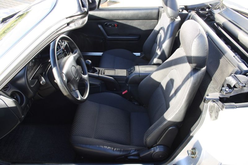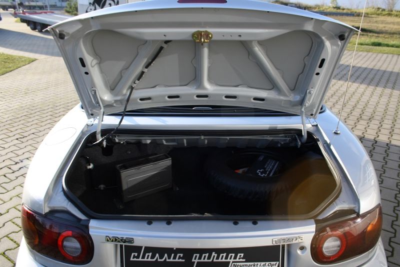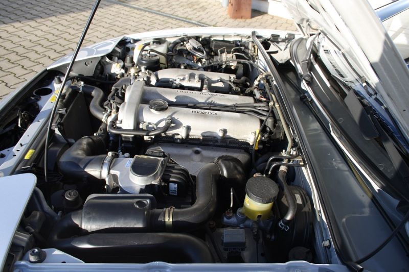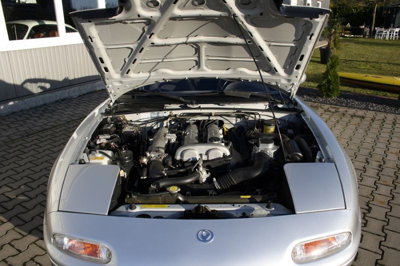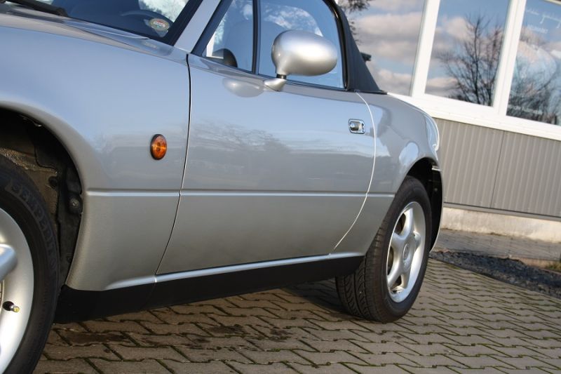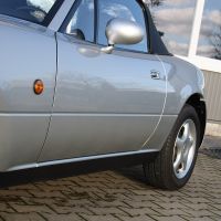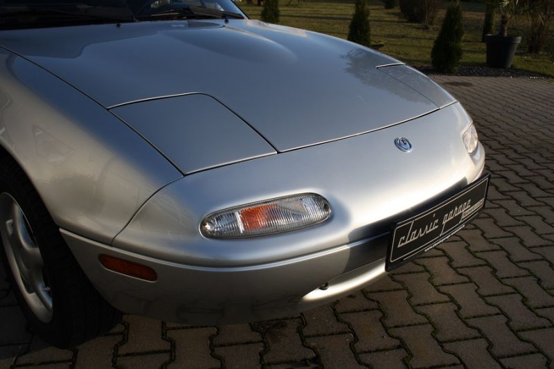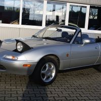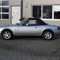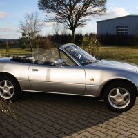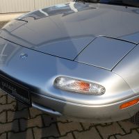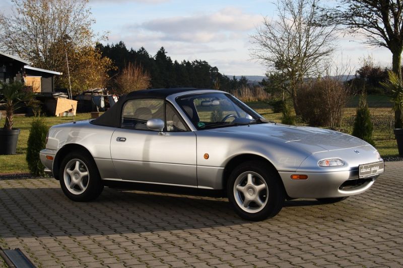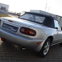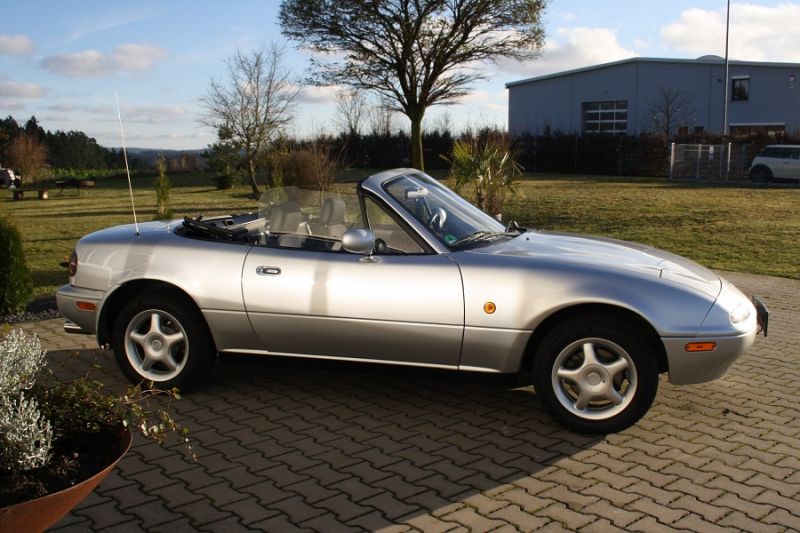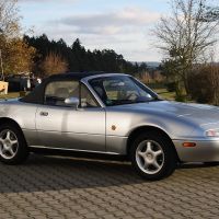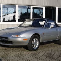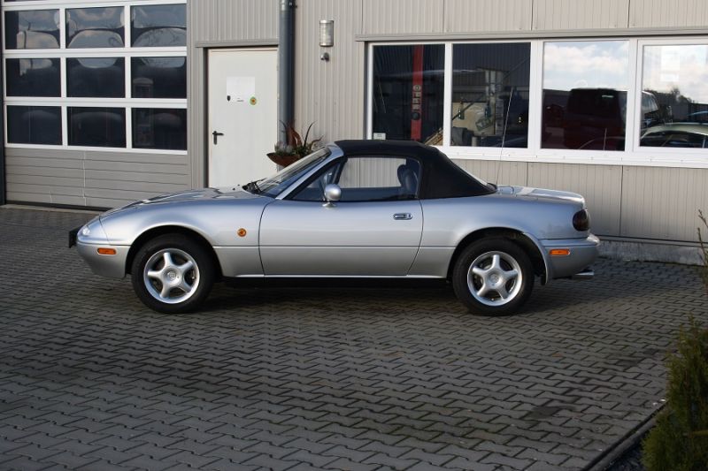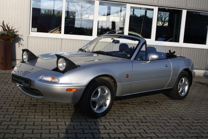 Neu im Angebot haben wir einen sehr schönen und außergewöhnlich guten Mazda MX-5 NA in glänzendem Silber-Metallic. Der MX-5 war ein PKW-Modell des japanischen Autobauers Mazda und wurde als Typ NA von 1989 bis 1998 produziert. Mit seiner Produktion wurde praktisch die Wiederbelebung der Roadster in den 90er Jahren eingeleitet. Hauptmerkmale dieses Modells waren vor allem die Klappscheinwerfer. Bei unserem Modell handelt es sich um ein Fahrzeug mit deutscher Erstauslieferung, der Japaner war immer in Liebhaberhand bzw. stand die letzten Jahre in einer Mazda-Sammlung. Dies erklärt wohl auch den sehr guten Karosseriezustand. Typische rostanfällige Stellen wie Schweller, Seitenteile und Hinterachskörper zeigen sich hier von ihrer besten Seite... für ein deutsches Fahrzeug mit Sicherheit außergewöhnlich. Auch das silberne Lackkleid glänzt noch sehr schön mit nur wenigen Gebrauchspuren. Bevor der MX-5 in die Sammlung kam wurden lediglich Gebrauchspuren entfernt und partiell nachlackiert. Die originale Steinschlagstruktur an den Seiten blieb natürlich erhalten. Das Verdeck präsentiert sich ebenfalls als sehr gut und beinahe neuwertig, es dürfte sich hier sogar noch um das Original handeln incl. Reißverschluss. Der Innenraum wirkt sehr gepflegt und sauber, hier steigt man(n) gerne ein und fühlt sich sofort wohl. Das Vierzylinder-Triebwerk springt sofort an und verrichtet zuverlässig seinen Dienst. Der Motor gilt als Dauerläufer und bei regelmäßiger Pflege als fast unkaputtbar. Erstmal unterwegs macht jeder gefahrene Kilometer mehr Spaß. Mit seiner Kombination aus Frischluft, quirligem Handling und herrlich problemloser Funktion setzt dieser Roadster heute noch Maßstäbe. Technisch wurde vor gut 1000 Kilometern einiges investiert wie z.B. ein großer Service incl. Zahnriemen, Batterie und Bremsen. Auch hier gilt natürlich wie immer vergleichen!!! Insgesamt ein wirklich schöner MX-5 in traumhafter Farbe und vergleichbar wenig Kilometern... der nächste Frühling kommt bestimmt! Achtung: Da der Kauf eines Klassikers auch Vertrauensache ist und Zeit für Beratung und Probefahrt in Anspruch nimmt, bitten wir Sie bei Interesse einen Termin mit uns zu vereinbaren! Bei ernsthaftem Interesse bitte anrufen! In einem persönlichen Gespräch ist in 5 Minuten mehr und detailierter erklärt als mit tagelangem Mail-Verkehr. Und NEIN, es gibt keine weiteren Bilder als Die auf unserer Homepage. Gerne können Sie das angebotene Exemplar auch auf unserer Hebebühne besichtigen.