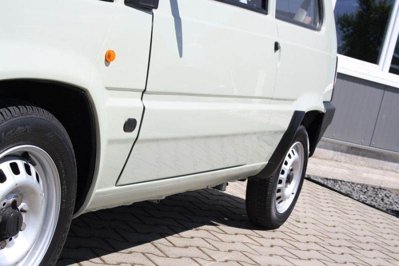 Neu im Angebot haben wir einen extrem seltenen Fiat Panda 1.3 Diesel in herrlichem Lind-Grün. Der Panda der ersten Baureihe (141) war ein Kleinwagen des italienischen Automobilherstellers Fiat und wurde in den Jahren von 1980 bis 2003 produziert. Mit einer Stückzahl von über 4 Millionen zählt der Panda zu den erfolgreichsten Modellen der Marke. Das "Haushaltsgerät auf Rädern" war minimalistisch ausgestattet, durch seine einfach herzustellende Karosserie konnte der Wagen günstig angeboten werden. Während bei uns in Deutschland den Panda wohl nur mit Benzin-Motoren kennt wurden auch wenige Exemplare mit Diesel-Aggregaten produziert und verkauft. Um so mehr freut es uns, Ihnen dieses seltene Exemplar vom Selbstzünder anbieten zu können. Die "Tolle Kiste" kommt gerade aus dem sonnigen Italien wo sie Zeit ihres Lebens verbrachte. Die Karosserie befindet sich demnach in einem sensationell guten Zustand, ich denke die Bilder sprechen mehr als 1000 Worte! Kenner wissen wie es in der Regel mit dem Panda der ersten Generation bestellt ist... Rost soweit das Auge reicht! Gerne können Sie sich das Fahrzeug auf unserer Hebebühne zeigen lassen und sich dabei vom rostfreien Zustand überzeugen. Auch der Innenraum wirkt neuwertig und sehr gepflegt, die Sitze sind frei von jeglichen Beschädigungen. Highlight ist natürlich das 1.3 Liter Dieselaggregat bekannt aus dem UNO. Einmal kurz vorgeglüht springt der Panda sofort an und nagelt was das Zeug hält. Sobald der Motor seine Temperatur erreicht hat fährt der Wagen erstaunlich flott. Dieser Wagen ist für einen Panda-Sammler fast schon wie ein Sechser im Lotto... der sehr gute Karosseriezustand in Verbindung mit seinem Selbstzünder machen diesen Panda zu etwas außergewöhnlichem. Daher richtet sich dieses Angebot in erster Linie an Sammler und Liebhaber dieser Spezies. Wie bei uns üblich erhalten Sie den Italo-Klassiker mit frischem Service und neuer HU incl. H-Abnahme. Und für alle Händler und Schrauber: Fragen Sie doch nach unserem "So-wie-er-steht"-Preis! Achtung: Da der Kauf eines Klassikers auch Vertrauensache ist und Zeit für Beratung und Probefahrt in Anspruch nimmt, bitten wir Sie bei Interesse einen Termin mit uns zu vereinbaren! Bei ernsthaftem Interesse bitte anrufen! In einem persönlichen Gespräch ist in 5 Minuten mehr und detailierter erklärt als mit tagelangem Mail-Verkehr. Und NEIN, es gibt keine weiteren Bilder als Die auf unserer Homepage. Gerne können Sie das angebotene Exemplar auch auf unserer Hebebühne besichtigen. Die hier gemachten Angaben sind unverbindliche Beschreibungen. Sie stellen keine zugesicherten Eigenschaften dar. Der Verkäufer haftet nicht für Irrtümer, Eingabefehler und Datenübermittlungsfehler.