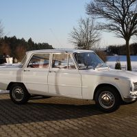Angeboten wird hier eine sehr schöne Alfa Giulia 1300 Super in klassischer Außenfarbe biancospino. Die Giulia war eines der erfolgreichsten Modelle des italienischen Automobilherstellers Alfa Romeo und wurde im Zeitraum von 1962 bis 1978 produziert. Bei unserem Julchen handelt es sich um das 1300 Super Modell mit klassischen Rundinstrumenten und Doppelvergaser. Trotz des Baujahres war die Giulia den meisten Mitbewerbern weit voraus... 5-Gang Schaltgetriebe, Scheibenbremsen vorne und hinten und ein durchzugstarker Benzinmotor mit 2 obenliegenden Nockenwellen waren hier bereits Serie. Unser Wagen kommt gerade aus dem sonnigen Italien wo er Zeit seines Lebens verbrachte. Seine Herkunft macht sich vor allem am guten Karosseriezustand bemerkbar... Boden, Schweller, Wagenheberaufnahmen und Reserveradmulde befinden sich noch im Originalzustand. Auch die Sicken vom Übergang Schweller zum vorderen Kotflügel sind auf beiden Seiten vorhanden. Der Lackzustand ist als gut zu bezeichnen, natürlich wurde der Wagen im Laufe der Jahre mal nachlackiert, unvermeidbare Gebrauchspuren des täglichen Lebens und Ausbleichungen machten dies nötig. Der Innenraum der Giulia wirkt gepflegt und befindet sich noch im Originalzustand. Die bordeaux-farbene Kunstlederausstattung wirkt gepflegt mit normalen Gebrauchspuren nach über 50 Jahren. Der Innenhimmel befindet sich ebenfalls noch im Originalzustand, dieser hat wie bei fast allen Giulia´s die üblichen Flecken bedingt durch den Kleber der sich im Laufe der Jahre sichtbar gemacht hat. Technisch befindet sich die Giulia ebenfalls im guten Zustand, der Doppelnockenmotor springt sofort an und hängt sehr gut am Gas. Das 5-Gang Schaltgetriebe lässt sich exakt bedienen und hat KEINE Synchronisierungsprobleme! Insgesamt eine sehr schöne und gute Giulia wie man(n) sie nicht mehr an jeder Ecke findet. Spaßfaktor ist hier garantiert. Eine Augenweide die nur darauf wartet in den bevorstehenden Frühling bewegt zu werden. Und auch hier gilt wie immer... vergleichen! Gerade bei den klassischen Alfa´s wird jede Menge Schrott bzw. "vermeindlich" gut restaurierte Modelle angeboten. Dieses Julchen ist nicht "überrestauriert" sondern ehrlich. Wie bei uns üblich erhalten Sie den Wagen mit frischem Kundendienst und neuer HU incl. H-Abnahme (§21/23).
